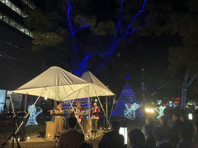 広島市中心部にありますPARCOそばのシンボルツリー下にてストリートライブでした。